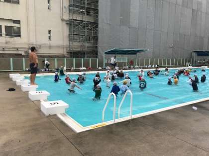 9月12日(水)今日はプール納めでした。今年最後のプールは晴れませんでした。夏休みには熱中症対策でプール開放が途中で終わってしまいました。先日の台風21号通過に伴ってプールに飛んできたものを除去する作業をしなければなりませんでした。例年とは違うプール水泳でしたが、子ども達は楽しみながら、よく頑張ったと思います。