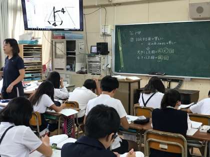 9月20日(木)2時間目、6年1組は算数をしていました。縮図と拡大図について教科書の問題を使って考えていました。