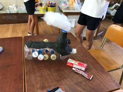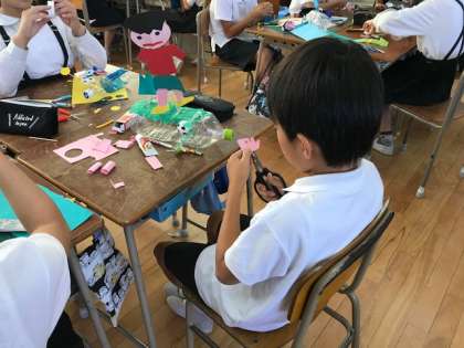 10月2日(火)2時間目、6年2組は図工をしていました。先週の公開授業からずいぶんできあがってきていました。クランクを回すと意外な動きがありおもしろい作品がいくつもできてきていました。ほんの一部を紹介します。