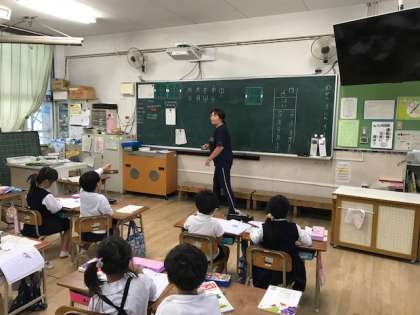 10月3日(水)4時間目、1年1組は国語で漢字の学習をしていました。山崎先生がおかしな漢字を黒板に書いて、みんなでどこがおかしいかを発表しあっていました。とても集中して先生の書く漢字を見ていました。