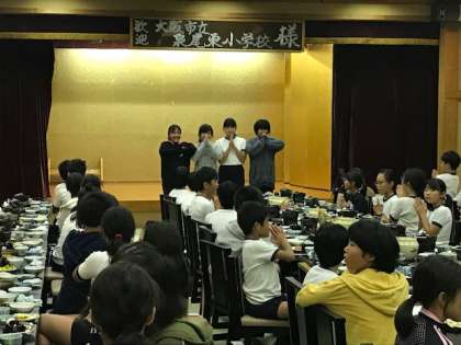 ごちそう様の前にレク係からのサプライズ。USAの踊りで大盛り上がり!