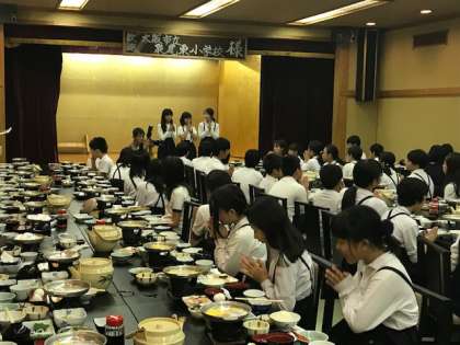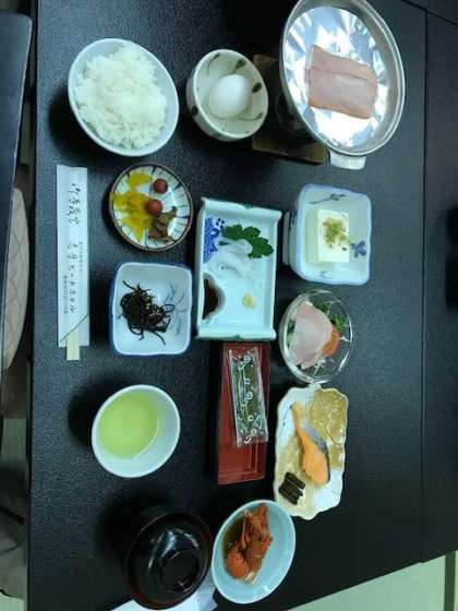 おいしい朝食をいただきました。各学級2名ずつぐらい伊勢海老の大当たりが出ました。