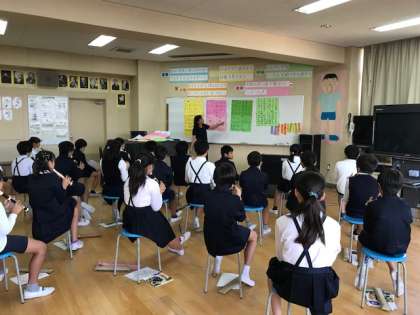 10月25日(木)1時間目、音楽室からリコーダーの心地よい音色が聞こえてきました。覗いてみると6年2組が音楽をしていました。次に「木星」という曲の演奏が始まりましたが、パート分けで、リズムを打つ人などさっと分かれて練習に入っていったので驚きました。