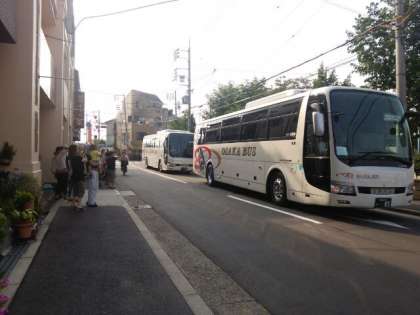 夏休みに入り、5年生にとっては楽しみにしていた林間学習(兵庫県ハチ高原)に出発する日がやってきました。天気は晴れ。学校周辺にクマゼミの元気な大合唱が響く中、たくさんの保護者の皆さんや学校関係者に見送られ、2台のバスに分乗して出発していきました。