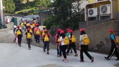 8時前には自然散策と写生に出発。宿の都合で魚つかみがが午後から午前中に変更されました。そのため、朝から先生方は予定の調整に四苦八苦。なんとか調整が着き、散策へと出発しました。