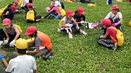 昼食を食べた後は、焼き板工作です。みんな真っ黒になりながら、一生懸命に歯ブラシで焼き板のすすを落としています。その後、色とりどりに林間学習の思い出を板一面に書き連ねていました。