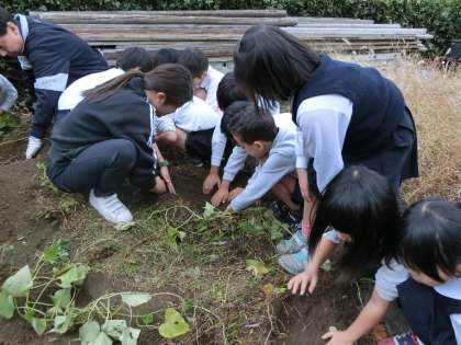 5時間目、2年生が去りゆく「秋」を惜しむようにみんなでいもほりをしました。結構たくさん取れました。このあと、このいもはどうなるのでしょうか?楽しみです。