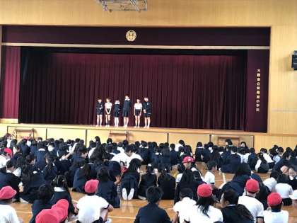 11月21日(水)今日の児童集会は集会委員会によるスリーヒントクイズでした。縦割り班で答を考えていました。