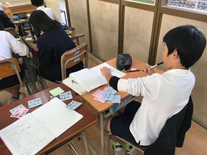 11月21日(水)3・4時間目、6年1組は昨日、町会長さん等地域の方から聞き取ったことをまとめていきました。いろいろな情報が集まったことをまとめ発信するために、校区へあらためて調査に出かけることになりました。