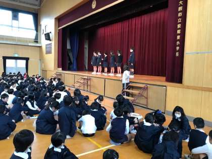 12月5日(水)児童集会は集会委員会による「棒読み曲当てクイズ」でした。「ひまわりの約束」「アンパンマンマーチ」「キセキ」「トリセツ」「U.S.A」「小さな恋のうた」の6問が出題されました。答え合わせの時、集会委員会の人が歌いながら答えを発表したので楽しくなりました。