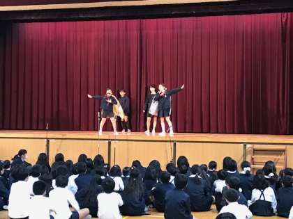 12月6日(木)臨時の児童集会がありました。児童会の代表からろうか・階段の歩き方や教室での過ごし方について劇でわかりやすく全校児童に伝えていました。また児童会では、安全・安心に学校で過ごすための注意喚起のビデオや本を作ったことを紹介していました。