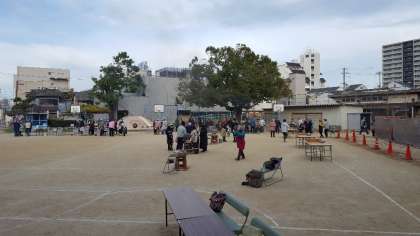 多くのPTA・地域の方々が早朝よりお越しいただき、準備が進んでいます。