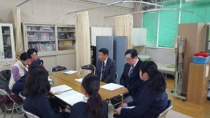 健康委員会の代表児童3名、PTA保健給食委員の方2名、学校薬剤師山崎先生、養護教諭、校長、教頭が一堂に会し、先日の「薬の正しい使い方教室(6年)」で学んだことを元に薬の使い方について質問したり、山崎薬剤師先生の話を聞いて、意見や感想を述べたりしました。