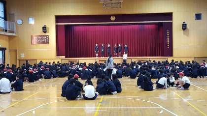 今日は講堂に集まって先生あてクイズでした。誰先生が答えだったかは、お子さんに聞いてみてください。今日はお昼の放送でも英語で先生クイズが出たようです。こちらの方も誰先生だったか、訊いてみてください。