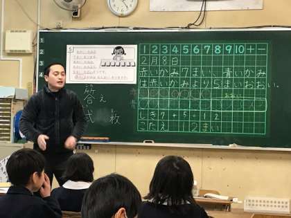2月8日(金)5時間目、1年2組は算数でした。問題を図に表して考える学習でした。子ども達は図を書きながら式を導きだし、答えを出していました。この授業は教育センターの先生に見て頂き、清水先生の指導について授業後アドバイスをいただきました。