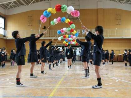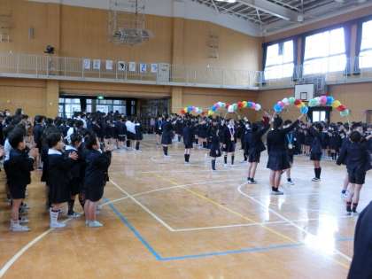 児童会主催の行事です。計画から前日の委員会活動での準備・会場飾りつけや今日の司会進行も含め、子どもたちの素敵な笑顔が輝いていました。1年生から5年生までが講堂に集まり、6年生の卒業をお祝いしました。