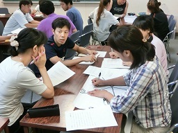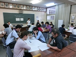2学期の開始を前に校内研修会を持ちました。子どもたちを効果的に指導するにはどうすればよいか。具体的な場面を想定しながら、グループで討議し合いました。