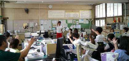 夏休みの間、教員は様々な研修会に参加し、校内研修でその成果を還元しています。今日は、「シナプソロジー」の伝達講習を行いました。