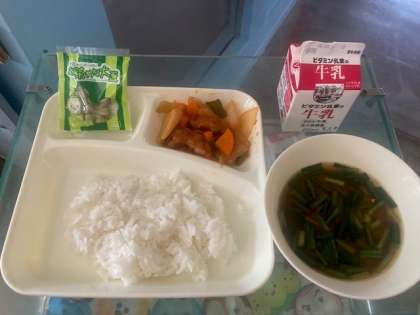 酢豚、中華みそスープ、まっ茶大豆、ごはん、牛乳