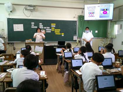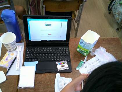 歯科校医先生と歯科衛生士さんにお越しいただき、4年生がフッ化物洗口を行いました。咀嚼チェックガムとアプリを使って、自分の噛む力の測定も行いました。