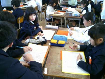 2年生で国語科の研究授業を行いました。『ビーバーの大工事』を読んで、「ここがすごい!」と思ったひみつについて「ひみつカード」にまとめ伝え合いました。グループでの話し合い活動では、友達の考えを聞いて自分の考えと比較し、さらに考えを深めていきます。リーダーさんも、しっかりと班の話し合いをまとめようと頑張っていました。