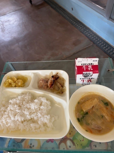 鶏肉の塩こうじ焼き、かす汁、栗きんとん、ごはん、牛乳