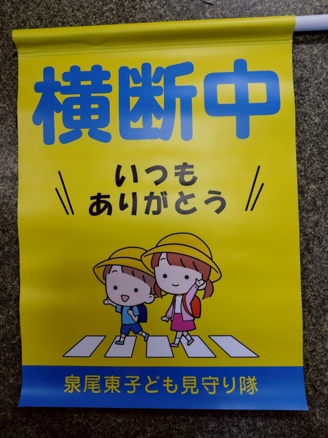 いつも見守り隊の方が手にもってくださっている安全旗が、新しくなったそうです。