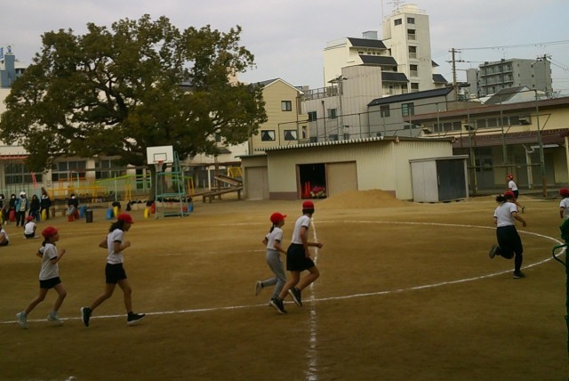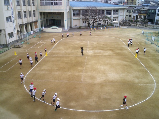 子どもたちの体力向上の手立てのひとつとして、持久走に取り組んでいます。