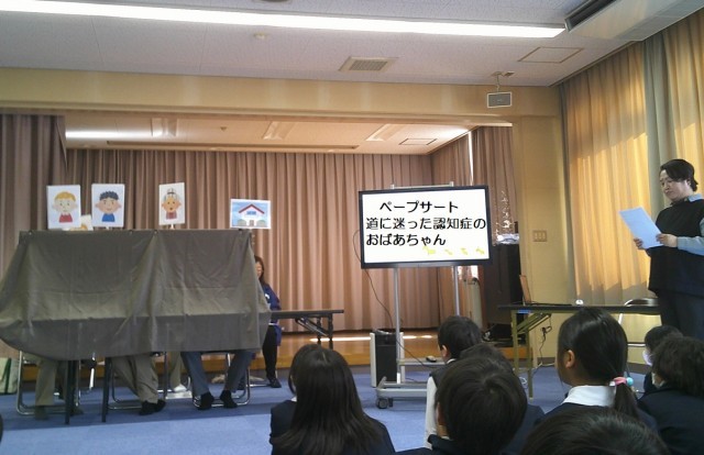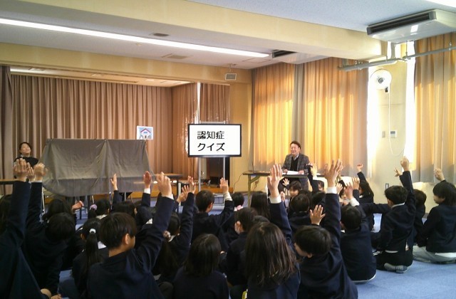 まず、認知症について知り、ペープサートでは認知症の方と接するときの良くない例・良い例がわかりました。認知症クイズには難問もありましたが、学んだことを振り返りながら積極的に挙手していました。