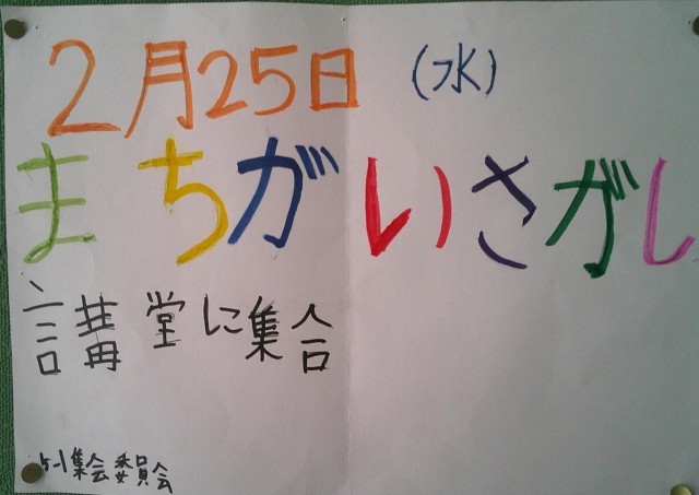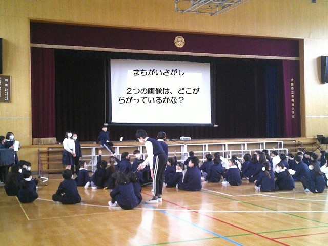 今年度最後の児童集会は、5年1組の集会委員さんの企画による「まちがいさがし」でした。