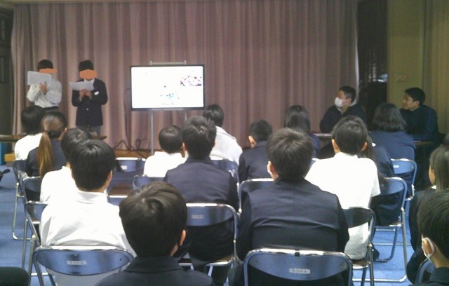 本校から多くの児童が進学する大正北中学校の生徒会より、6年生に向けて中学校生活についてお話をしに来てくれました(一人は本校の卒業生です)。中学校の授業や行事、生徒会活動や部活動などについて、手づくりのプレゼンテーションを用いた説明は、とても分かりやすいものでした。6年生から出たさまざまな質問にも丁寧に答えてくれ、頼もしい先輩がいることに、進学が少し不安だった子も、安心することができたのではないでしょうか。