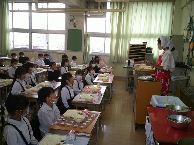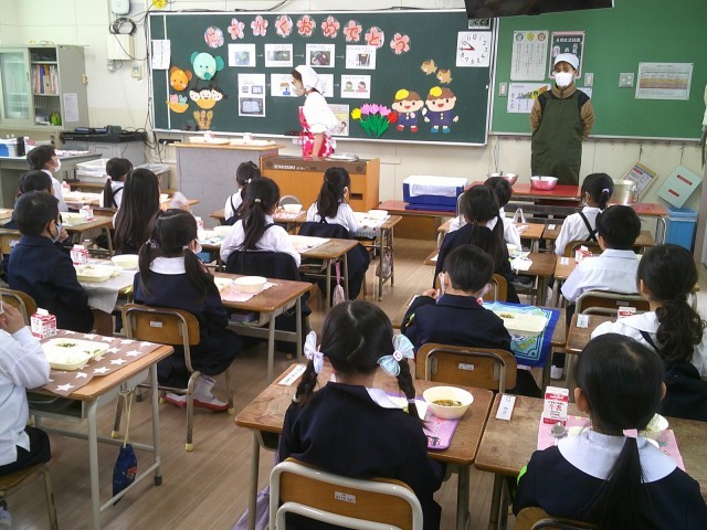 配膳や準備は6年生が一つ一つていねいに行い、やさしく声をかける姿に、上級生としての頼もしさが感じられました。1年生もその姿に安心し、落ち着いて食事をすることができました。