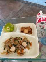 本日の献立 中華丼、あつあげの中華だれかけ、みかん、ごはん、牛乳