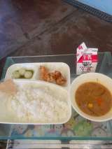 本日の献立 なすのミートグラタン、鶏肉とキャベツのスープ、りんご、こくとうパン、...