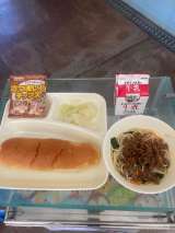 本日の献立 タンタン麺(肉みそ、汁めん)、キャベツの甘酢づけ、おさつチップス、お...