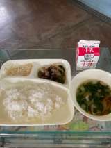 本日の献立 プルコギ、トック、もやしのナムル、ごはん、牛乳