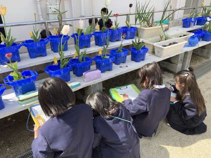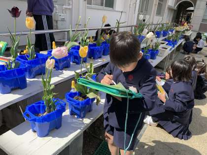 自分たちが育てたチューリップを細かく観察し観察カードに仕上げました。