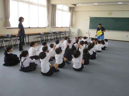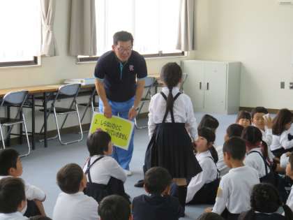 大正区役所からツージィ隊の方たちが来られて、1年生に安全な学校生活を送るために気をつけることについてお話をしていただきました。1年生も真剣にお話を聞いていました。