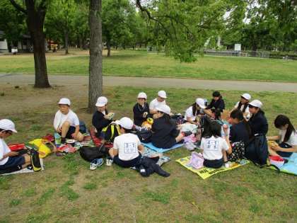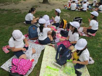 午前中のグループ活動が終わった後は、「お弁当とおやつタイム」です。「せっかくだから一緒に活動した友達を誘って食べようね」というと、声をかけて食べている子が多かったです。とてもいい交流になっていたと思います。
