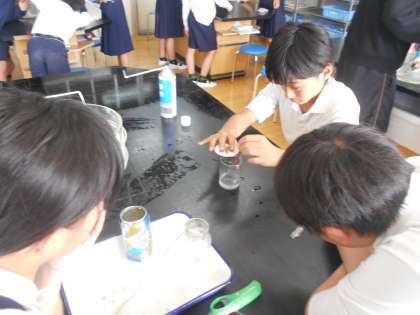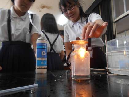 「どうなるのかな」と予想を立て、いざ実験を行うと、一気に燃え上がり、みんなびっくりしていました。
