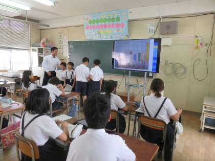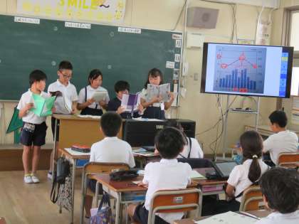 中泉尾小学校ではICTに積極的に取り組んで3年目になります。子どもたちもずいぶん扱いに慣れてきており、普段の授業での発表などにもタブレットを活用しています。