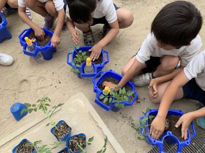 土の準備をしたので今日はミニトマトの植え替えをしました。