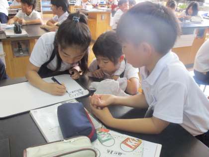 理科の学習で「天気と一日の気温」の学習をしています。今日は一日の気温の変化について予想を立て、記録を取りました。普段の生活を思い出し、友だちと活発に話し合いを進めていました。
