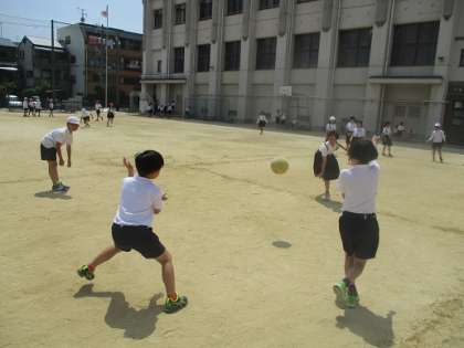 昼休みを使ってみんな遊びをしています。今日は男女に分かれてドッヂボールでした。男子の方がボールを投げる子が多いので、時間がたつにつれて男子の陣地が狭くなっていき…。後半、女子が追い上げましたが…男子の勝ちでした。