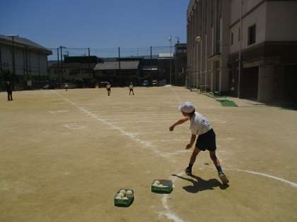記録をとる前に、練習タイムもあったのですが…「もう1球なげたい」と思う子もたくさんいたみたいです。