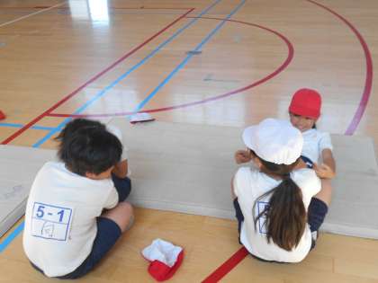 体育で「スポーツテスト」をしました。自分の記録を更新しようとみんなで、必死に頑張りました。