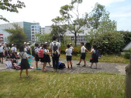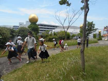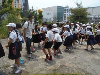 弁当を食べた後、バスの時間までしばらくあったので、食べ終わった人から「だるまさんが転んだ」や「はないちもんめ」をして遊びました。最初、数人で始めた遊びも勝手に人数が増えていきました。みんな仲良しで素敵な時間でした。