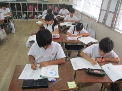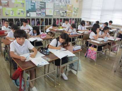 国語の単元「案内係をしよう」の学習中です。みんなは水族館の案内係の設定です。お客さんから問い合わせを受けます。資料から「伝えないといけないことを見つけ」、「丁寧にわかりやすく伝える」ことを一人ひとりが考えました。