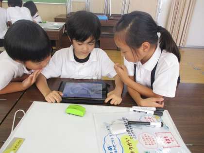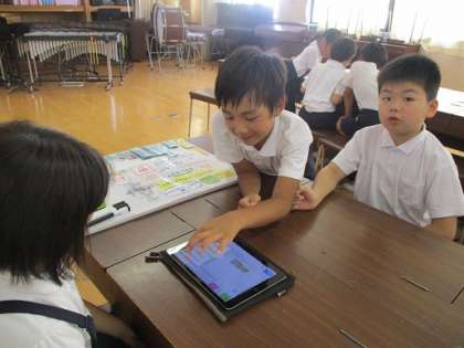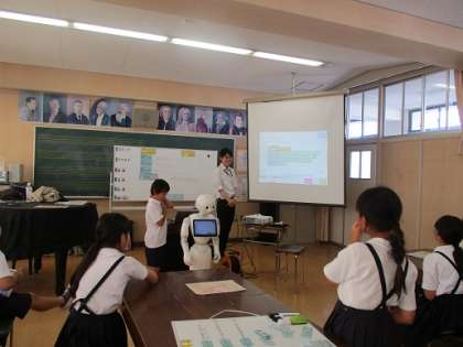 4年2組でもプログラミング学習が行われました。ペッパー君を前に、みんなで相談して積極的に学習に取り組むことができました。みんなの顔がいきいきとしています。
