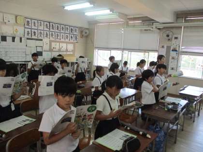 音楽の授業で「まきばの朝」を歌いました。みんなにとって聞いたことない曲だったみたいで、なかなか声が出ませんでした。慣れて覚えるまで時間がかかりそうです。練習がんばりましょう。